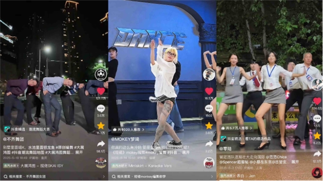 编舞方面,以“高契合、易参与、有共鸣”为核心理念,打造了一批极具创意的跟拍舞蹈。@不齐舞团、@MOKEY梦琦、@零陆等达人分别以热门歌曲“大展鸿图”“短裙”“表白”为灵感,以既易记又有卡点的高光动作,为作品打造“视觉符号”,分别获赞121.7w、16.5w、124w。难度适中的动作设计让大众容易记忆,也能主动模仿,从而激发跟拍意愿。而舞蹈中传递“青春、减压、有趣”等易共鸣的情绪,则让大众既“想跳”又能“跳得开心”。